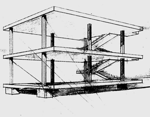"Cinq points de l'Architecture Moderne" uitlegde, die voor het bouwen met gewapend beton geldig