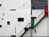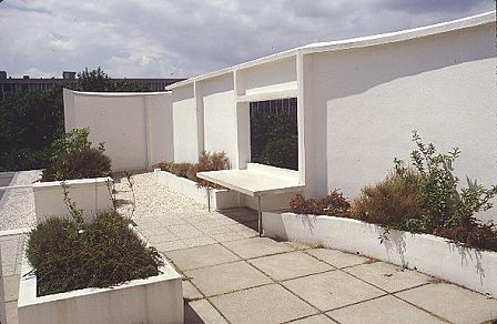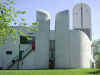 Corbusier. De witte kleur en de bogen van het gebouw vormen een tegenstelling met de ruwheid van