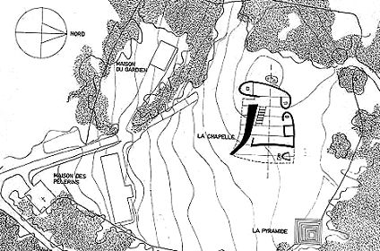 ontworpen door Le Corbusier. De weg die naar de kapel leidt is door de eeuwen heen begaan door duizenden pelgrims die Maria kwamen aanbidden. Ronchamp dus heeft een lange geschiedenis als pelgrimsoord, gewijd aan de Heilige Maagd, een traditie die diep in de plaatselijke cultuur