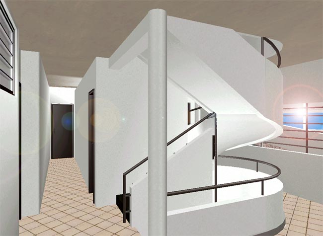 Met andere woorden, volgens Le Corbusier dient er een direct verband te zijn tussen volume en begrenzende vlakken, zowel wat betreft de vorm als functioneel. -