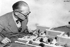 le corbusier bij de maquette van "la ville radieuse", 1935: ![]() |