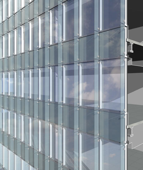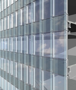 De curtainwall vliesgevel is tegenwoordig vaak uitgevoerd als glaswand,