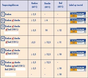 een andere benadering; productie warm water in liter per minuut waarbij het cijfertje rechtonderin het gaskeur-label de cw-versie aangeeft; het omhokte nummer is de cw-klasse (cw1, cw2, cw3, cw4, cw5, cw6); klik voor groter! (atho):![]() |