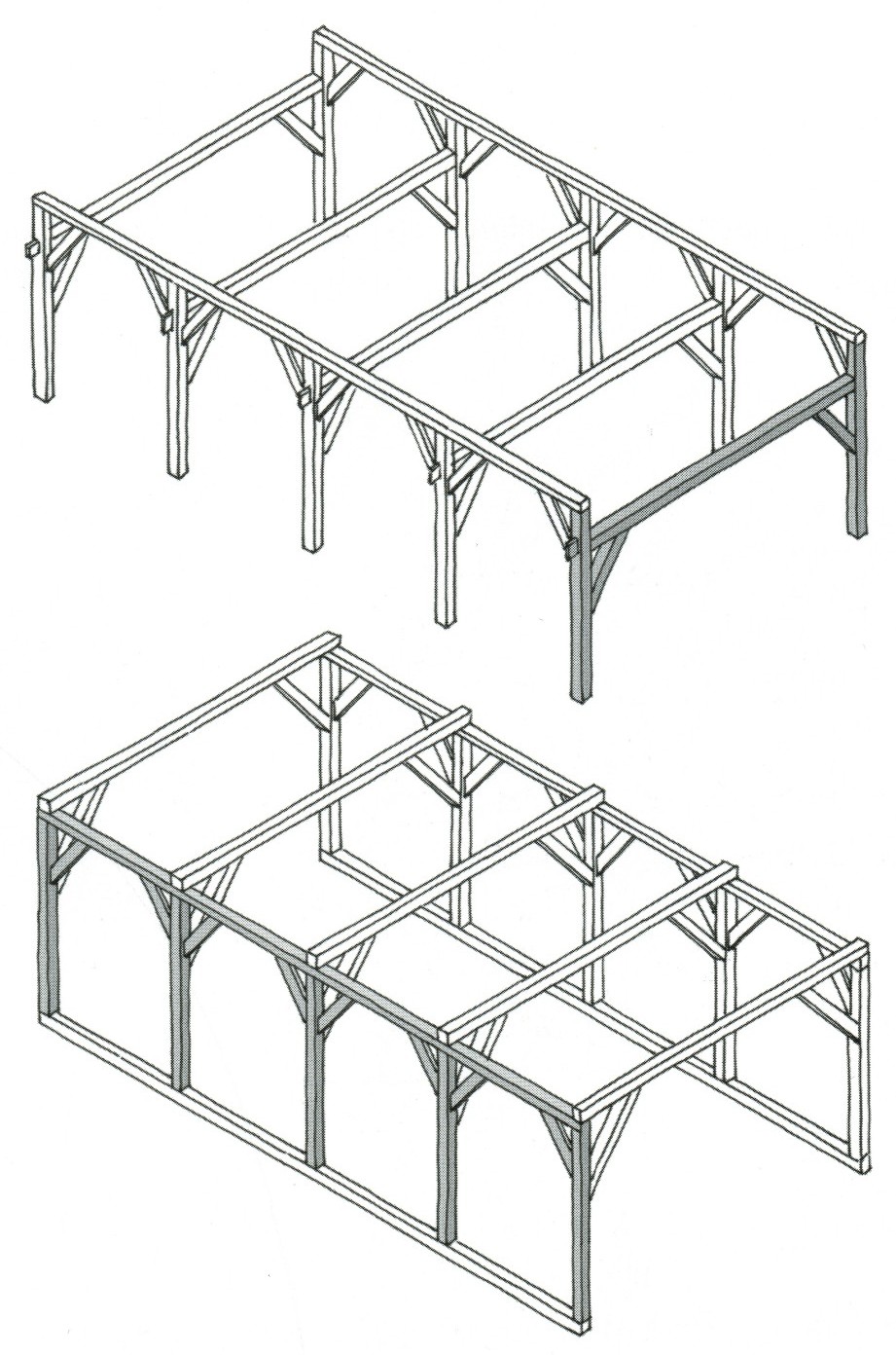 Twee principes in gebintbouw: dwarsgebint en langsgebint (zie ook meer bij gebint):