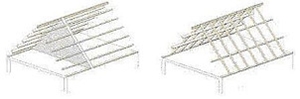 - een metalen dak (hallen, industrie, bijna altijd met liggers en eventueel kolommen als de overspanning te groot wordt)