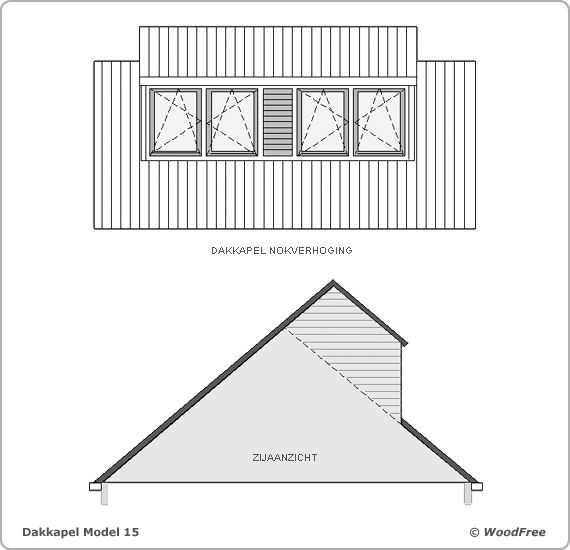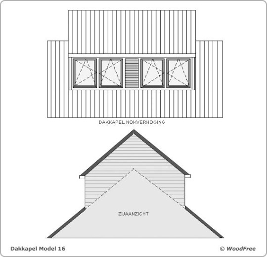 Vervolg voorbeelden, bv. zadeldak driehoekvorm van voren gezien |