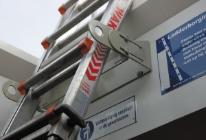 - bevestig uw ladder met touw of band aan het ladderborgingspunt