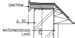 onderzijde daktrim minimaal 30 mm van gevel houden, anders loopt er teveel water tegen de gevel: ![]() |