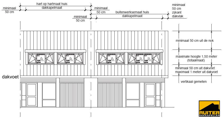 dakvoet, regels voor plaatsing dakkapellen; klik op de afbeelding voor groter, tekening rob verkamman, ruiter dakkapellen): ![]() |