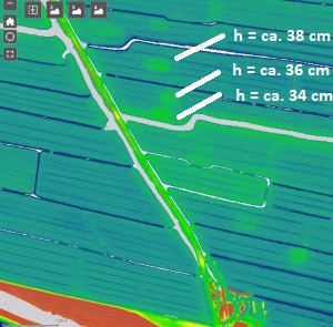 profieltekening van een onderzochte daliebult bij middelie; klik voor groter! (uit de pdf): ![]() |
