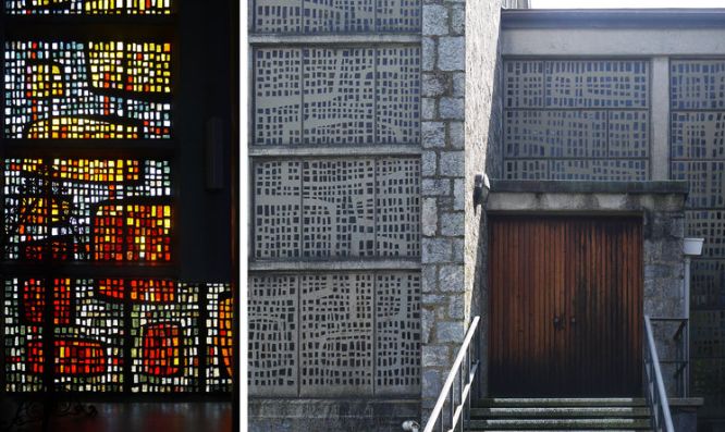 dalle de verre van hierboven; links een groot deel van het dalle de verre van binnenuit gezien; rechts zicht van buiten niet echt fraai te noemen door het grijze beton als vulmateriaal; klik voor groter (sasha ward): ![]() |