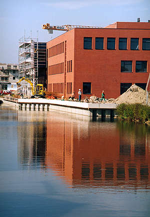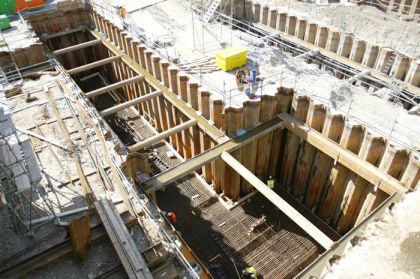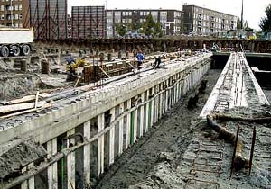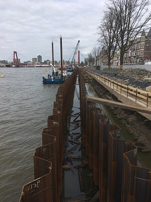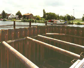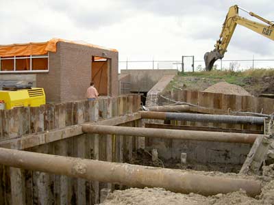 Bouwkuipen worden om begrijpelijke redenen vaak voorzien van damwanden (klik: naar bouwkuipen).