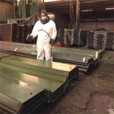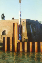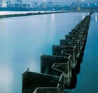 | Corrosiebescherming In de loop van de tijd zijn methoden ontwikkeld om het corrosieproces tegen te gaan of op zijn minst te vertragen, zodat de levensduur van de damwand kan worden verlengd en de kosten op de lange termijn lager zijn. Hierbij onderscheiden wij de volgende mogelijkheden: 1. Het aanbrengen van coating. Ervaringen hebben ons geleerd dat coating het begin van het corrosieproces tot wel 20 jaar kunnen vertragen. Hierbij zijn verschillende systemen mogelijk, maar meestal wordt een 2- of 3-laags systeem toegepast. - Primer: één laag, fosfaatprimer of zinkstofprimer (goede hechting aan het staal). - Coating: één tussenlaag plus één toplaag, op basis van epoxyhars, polyurethaanhars (beide verkrijgbaar in alle RAL-kleuren). Geen teer- of bitumenproducten meer ivm. de milieubelastbaarheid. Het beste resultaat wordt verkregen als de coating in een daartoe speciaal ingerichte werkplaats wordt aangebracht, waar de temperatuur en de vochtigheid onder controle zijn. Dan hoeven er op de bouwplaats alleen nog maar reparaties te worden uitgevoerd die zijn ontstaan door het inbrengen van de damwand (klem van het trilblok bijv.) of beschadigingen die zijn ontstaan tijdens het transport of de handeling van de damwandplank. Bijkomend voordeel van een coating is dat het aanzicht van de damwand verbeterd wordt, zeker als de damwand niet alleen maar in saai zwart wordt gecoat. 2. Metallische beschermingslaag (verzinken) Bij zeer corrosieve omstandigheden, bv. in een zout milieu, wordt steeds vaker de stalen damwand verzinkt. Dit proces vindt plaats in een zinkbad; de stalen damwandplank wordt ondergedompeld in een heet vloeibaar zinkbad (thermisch verzinken). Aangezien deze zinkbaden slechts een beperkte lengte hebben, kunnen de damwandprofielen niet al te lang zijn. 3. Kathodische bescherming Corrosie onder de waterlijn kan op een elektrolytische manier uitgeschakeld worden, door het inbouwen van een kathodische beschermingsconstructie met "'vreemdstroom" of een "opofferingsanode". Vaak wordt deze methode gecombineerd met een coating. De kathodische bescherming is bijzonder geschikt voor damwandconstructies met een getijdenlijn, en waar een sanering of vernieuwing te kostbaar is. Damwanden met een kathodische bescherming vereisen speciale constructieve maatregelen, waarmee men derhalve reeds in de ontwerpfase rekening moet houden. 4. Toevoegen van legeringen Ervaringen uit verleden hebben ons geleerd dat het toevoegen van koper aan het staal voor de damwandgedeelten die onder water staan geen levensduurverhogende functie heeft. Echter het toevoegen van koper in combinatie met nikkel en chroom zowel als fosfor en silicium kunnen leiden tot een langere levensduur in de splash-zone, met name in tropische gebieden met zoutrijke lucht. Wordt de hogere treksterkte van het staal gerealiseerd door het toevoegen van niob, titaan en vanadium, dan heeft dat een positief effect op corrosiegedrag. 5. Corrosiebescherming door overdimensionering Door het kiezen van een profiel met een hoger weerstandsmoment of het gebruiken van een hogere staalsoort kan, met op het oog op draagvermogen, een langere levensduur gerealiseerd worden. Profielen met een grotere wanddikte bieden een beter bescherming tegen doorroesten.