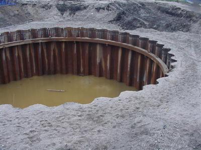 | voorbeeld van een stalen damwand, hier een specifiek geval een rond uitvoering (timmermans):  |