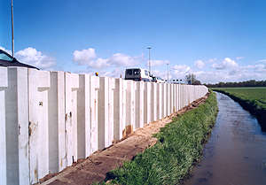 | Betonnen damwandplank, vlak Betonfabriek Nigtevecht heeft verschillende soorten damwandplanken van beton, bijvoorbeeld de damwandplanken met splintervrije koppen:  Brouchure damwandplanken en oeverbeschermingsproducten van Betonfabriek Nigtevecht | ||||