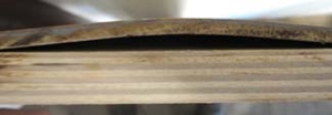 ("raising grain") is het gevolg van de delaminatie tussen vroeg- en laathout