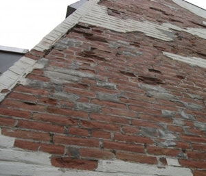 delaminatie ontstaan door inwerking van vocht of zouten.