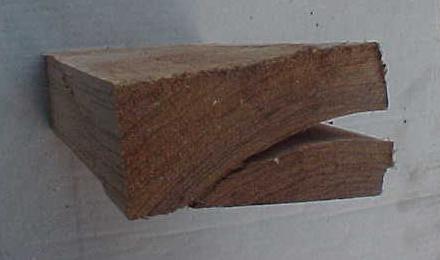 bijvoorbeeld een plank of paal; deze vorm van delaminatie komt vooral