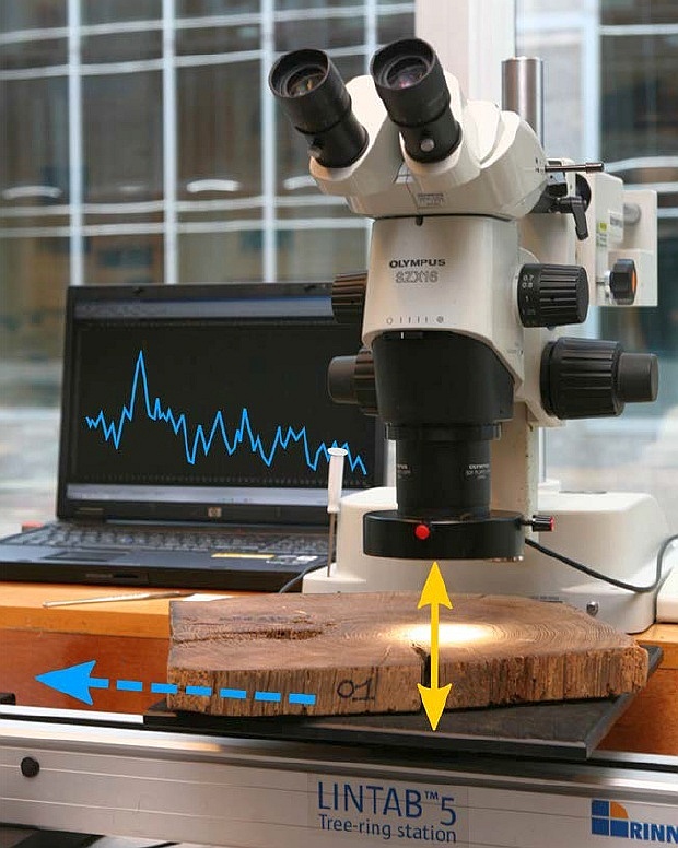 "Het principe van de dendrochronologie gaat uit van het gegeven dat bomen die binnen een bepaald gebied groeien, hetzelfde groeipatroon vertonen."
