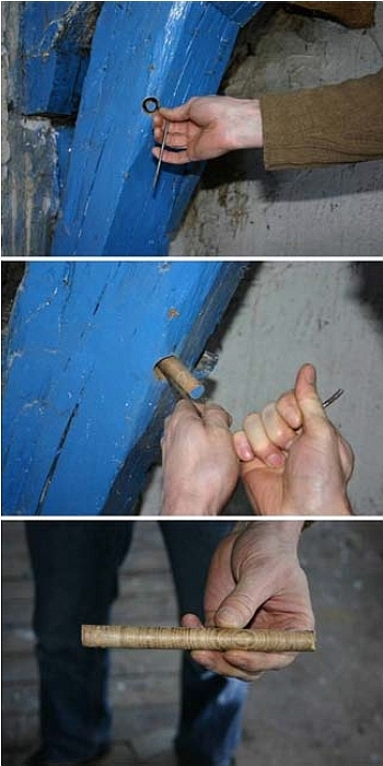 verwijderen van een houtmonster na boren met een holle boor (foto's gabri van tussenbroek): ![]() |