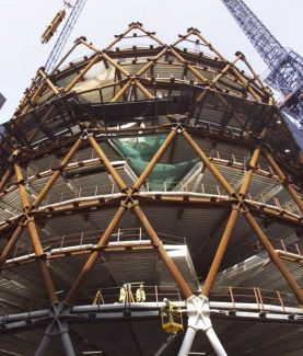 uitgevoerd. Soms wordt een diagrid van holle buizen samengesteld.