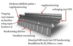 - een stootvoegrooster tegen bijen, wespen e.d. in de spouwmuur of een sleufrooster / afdichtingsnet tegen muizen, vleermuizen, ratten, marters, vogels e.d.