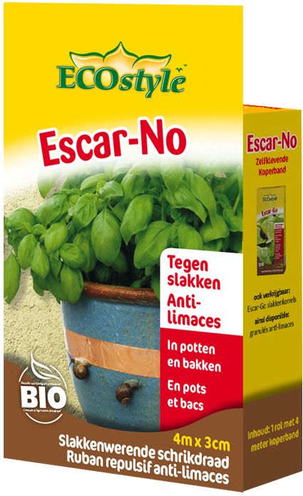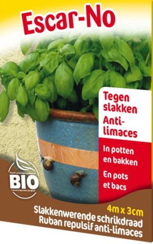 koperen anti-slakkenband "escar-no" om slakken te weren en daarmee planten te beschermen; slakken verdragen geen koper en kruipen er liever niet over (biologische bestrijding): ![]() |