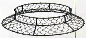 "open hoed" van kippengaas om slakken te weren; slakken houden er niet van om over het metalen frame te kruipen; donkergroen metaal, maaswijdte 2 cm, diamter bovenaan 27 cm en onderaan 40 cm (peacock garden supports): ![]() |