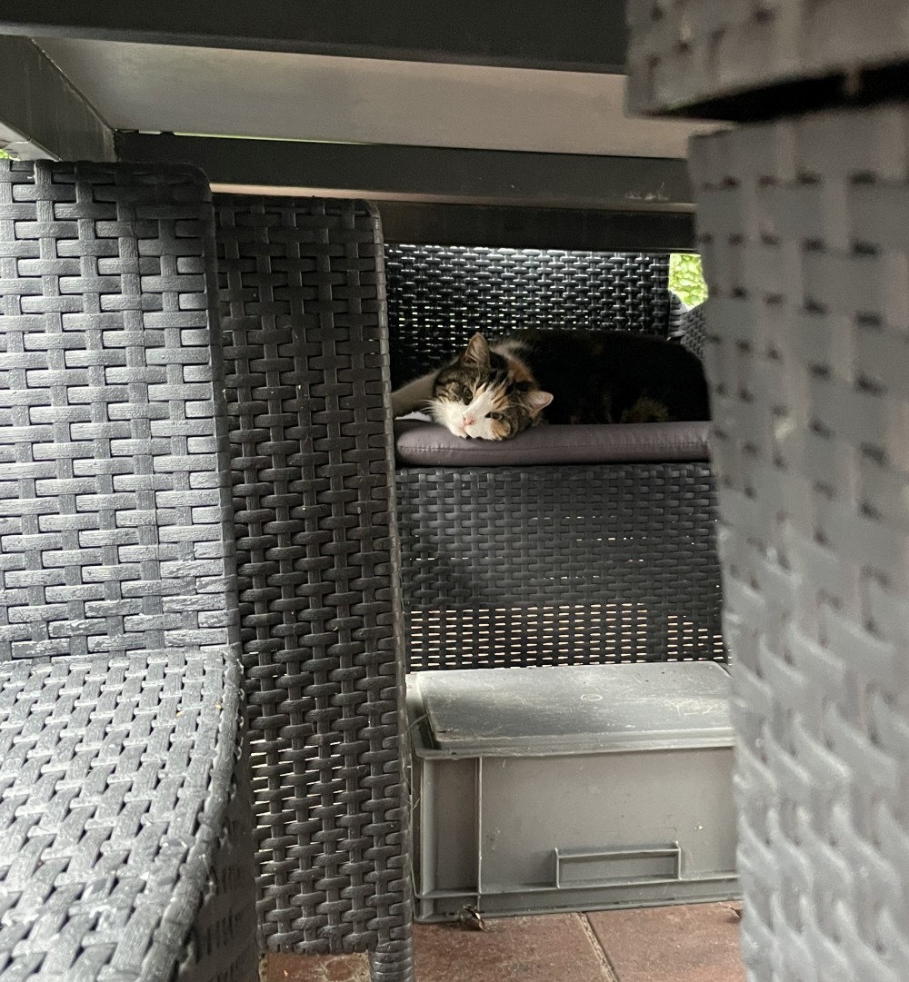 - de vensterbank (kan de kat slapen, of zitten en naar buiten kijken zonder de vogels te vangen)