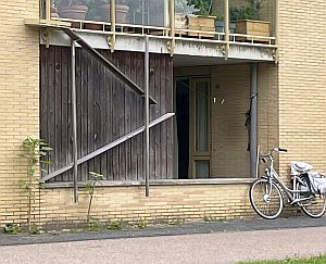 kattentrap, loopplank voor kat op 1e verdieping (klik hier voor de houten berging zonder kattentrap) (foto joostdevree): ![]() |