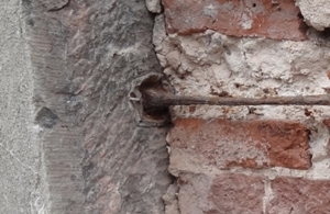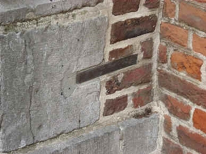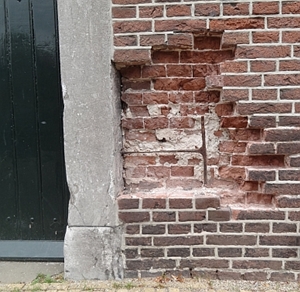 dook/anker bij natuurstenen deurstijl en bakstenen gevel; de volgende afbeelding geeft een detailopname (foto joostdevree): ![]() |