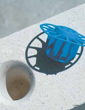 dook en dookgat bij kalkzandsteen blokken, dook van blauw recyclebaar polypropyleen (silka van xella): ![]() |