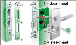 Bij vervanging van een slot is de "doornmaat" bepalend. Wanneer die afstand