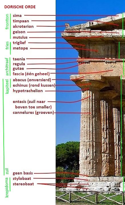 tekening met termen van de dorische orde; klik voor groter (joostdevree): ![]() |