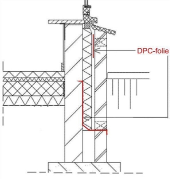 voorbeeld van dpc-folie bij een muur (mavotrans): ![]() |