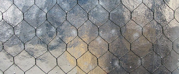 - naast draadglas in een vierkant rasterpatroon schijnt er ook draadglas met zeshoekig gaas te zijn