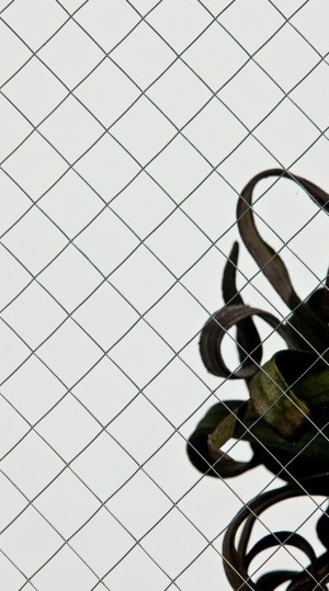 oud draadglas met kippengaas (cultureel erfgoed): |