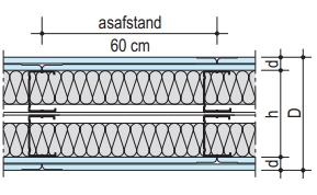 - de dubbele uitvoering van de U-profielen of M-profielen die pakketten isolatiemateriaal in de spouw vasthouden en die de steunen en bevestigers vormen voor de wanden