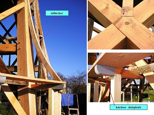 locatie van de duisplank, de uitbreker en de kardoes bij een molen (molenaar kees vanger): ![]() |