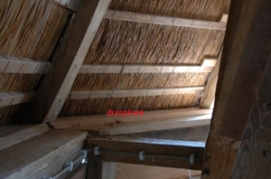 De duisplank is, omdat de veelhoekige molen vaak een steil rietdak heeft, vaak een horizontale plank.