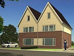 rijtje woningen waarvan de kap dwars op de rij huizen staat (eerste rij