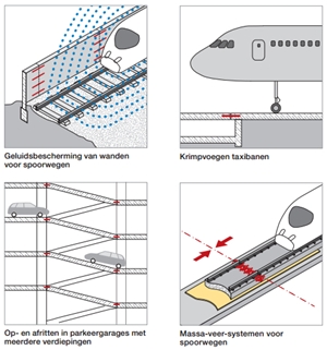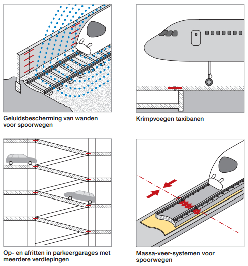 - eenvoudige oplossing voor de noodzakelijke bewegingsvrijheid van betonnen