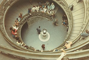 Soms komt bij de Engelse trap toch een bordes voor als de trap zeer groot is maar het bordes gaat met de spiraalvorm mee.