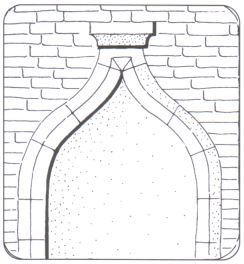 een ingezwenkte spitsboog die dubbelgebogen is.