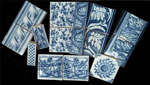 de eerste bak (voorzijde tinglazuur, achterzijde loodglazuur); veelkleurige