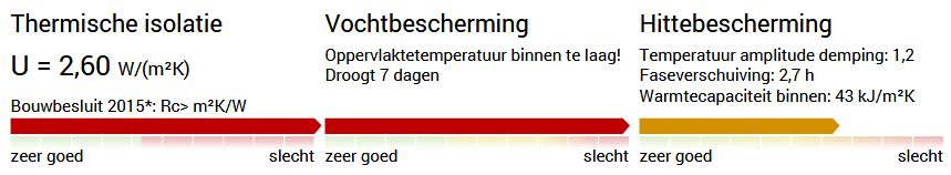 - Geïsoleerde gevel (binnentemperatuur schommelt met ca. 2 graden):
