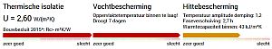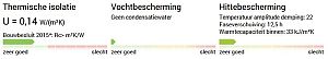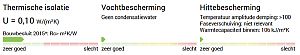 - Isolatiemateriaal aan de binnenkant verbetert de warmtebescherming niet of nauwelijks of werkt zelfs negatief omdat er door het isolatiemateriaal dan minder snel warmteopslag kan zijn.