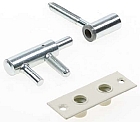 delen van een eenvoudige fits, vrouwelijk deel in deur, mannelijk deel in kozijn (r. janssen & zn scharnierpunt in ijzerwaren en bouwbeslag): ![]() |