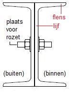flenzen bij een i-profiel dat uit 2 u-profielen bestaat, het verticale deel heet lijf, zie bij puibalk (afbeelding joostdevree): ![]() |