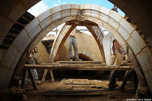 formeel en ribben van kruisgewelf met gewelfsleutel; klik voor groter (guédelon, foto c. guérard): ![]() |
